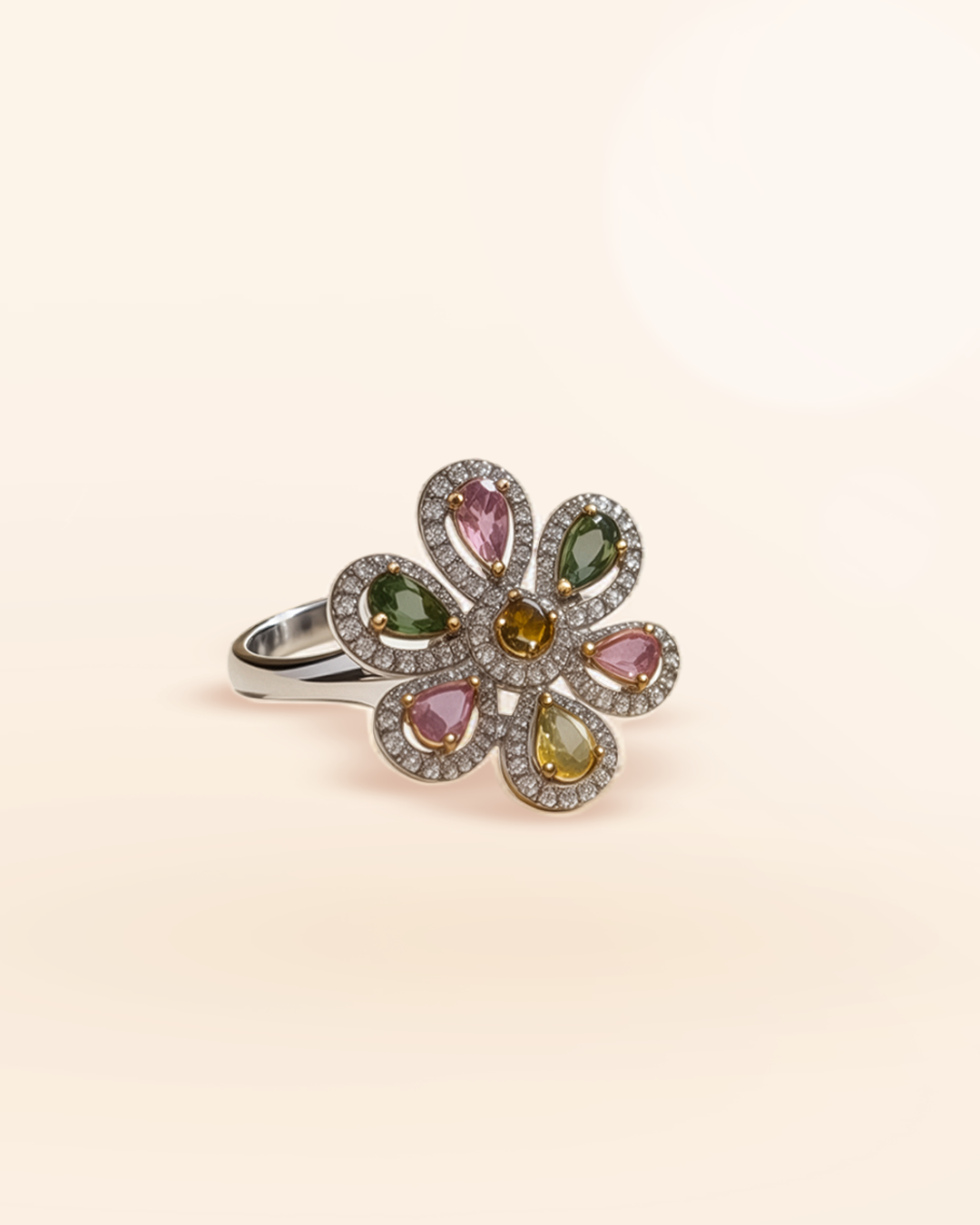 Anillo Oro Blanco Diamantes y Piedra Semipreciosa