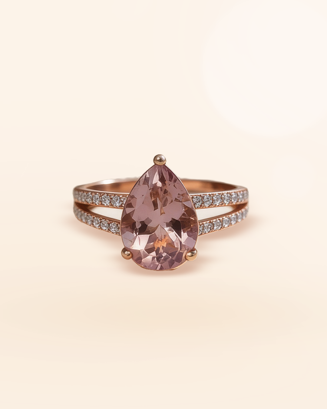 Anillo Oro Rosa Morganita y Diamantes